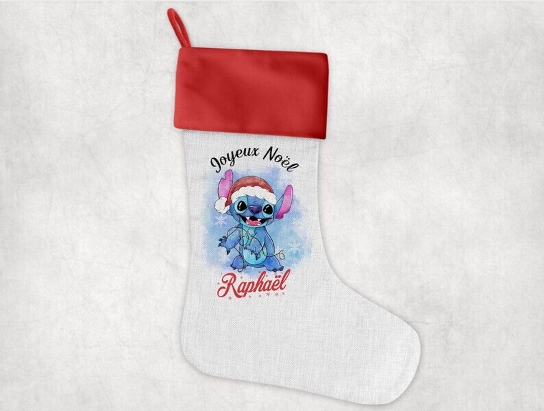 Chaussette de Noël personnalisée en tissu imitation chanvre avec bande velour rouge