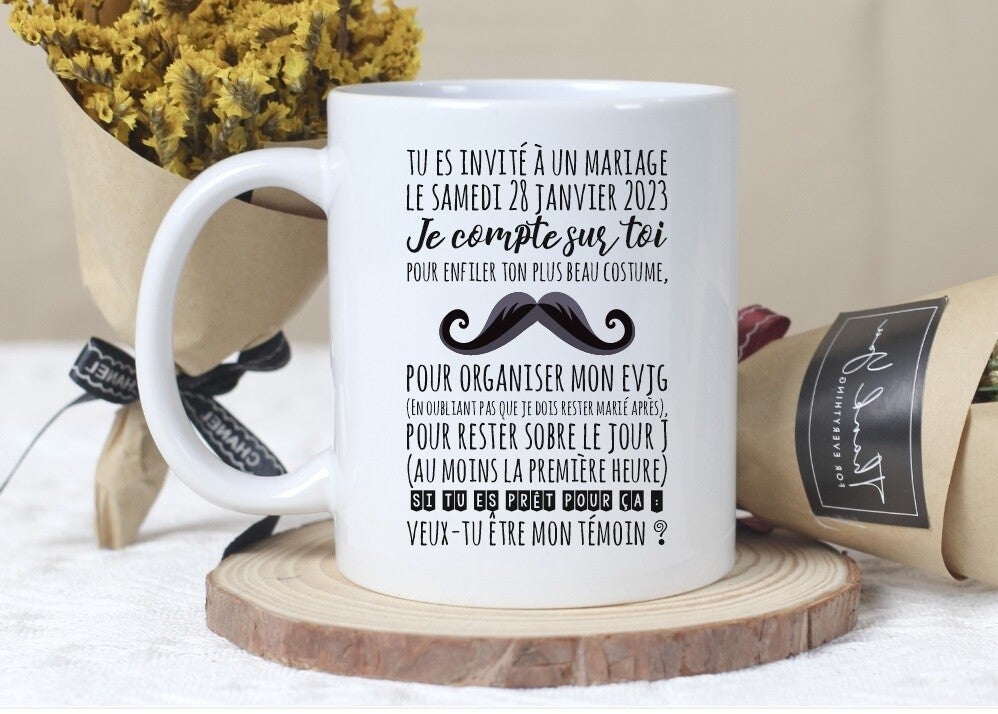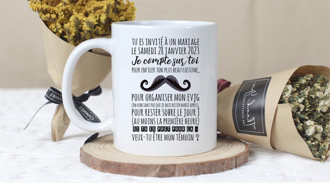 PAS DE PANIQUE !!! Bettina-kdo a la solution !!! Le mug personnalisé pour faire sa demande de témoin !!