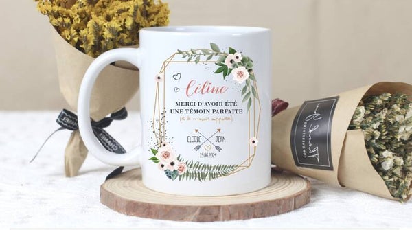 Idée cadeau pour vos témoins, optez pour le mug personnalisé.