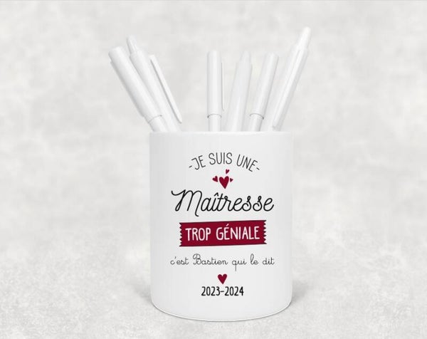 Pot à crayons personnalisé - Cadeau idéal pour la maîtresse en fin d'année scolaire