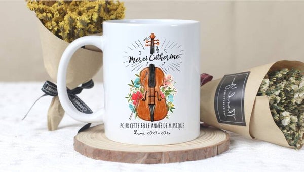 Exprimez votre reconnaissance de manière harmonieuse avec le mug personnalisé "Mélodie du Violon" et faites savoir à votre professeur de musique à quel point son enseignement compte pour vous.
