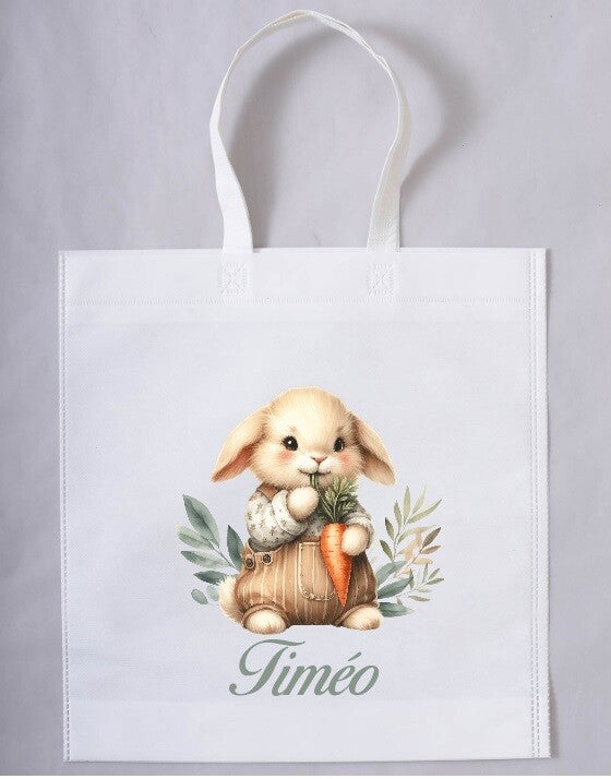 Sac shopping personnalisé, très pratique, léger et résistant, dispose de longues anses. Idéal pour la chasse aux œufs.