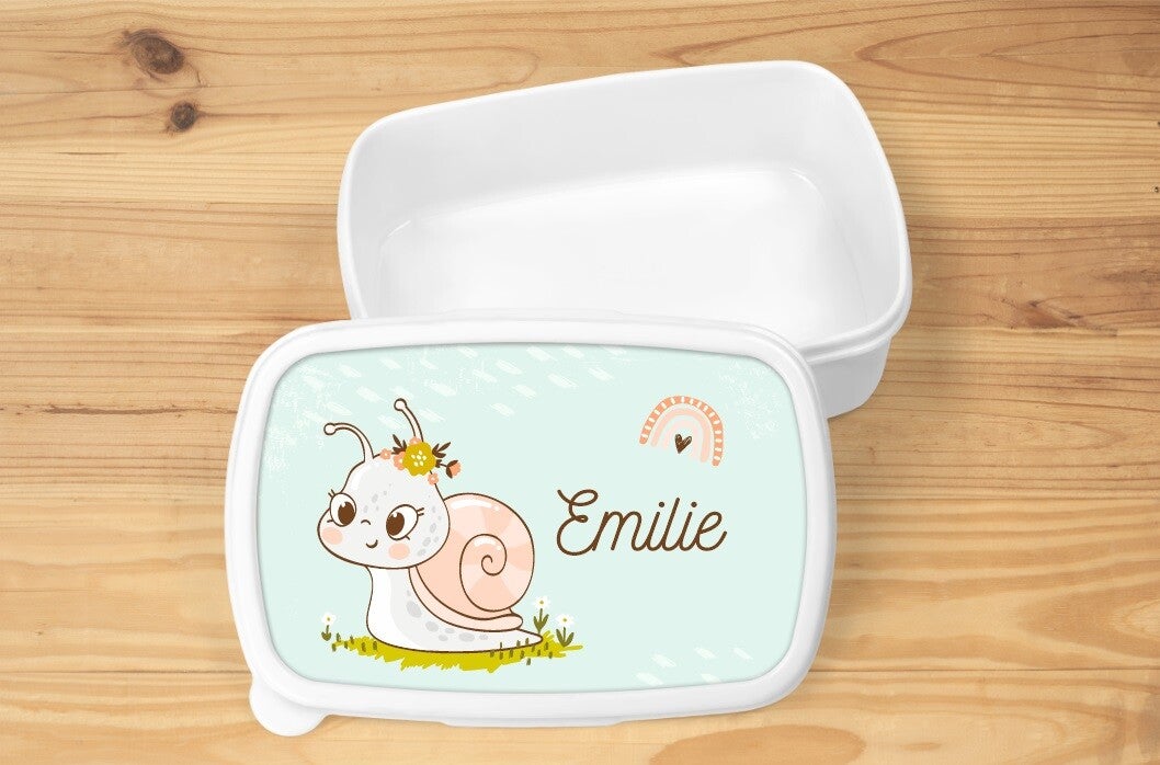 Boîte à goûter personnalisée "escargot", blanche ou rose