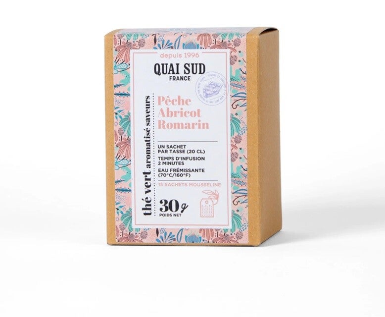 THÉ VERT AROMATISÉ SAVEURS PÊCHE-ABRICOT-ROMARIN Boîte CARTON 15 INFUSETTES x 2 g