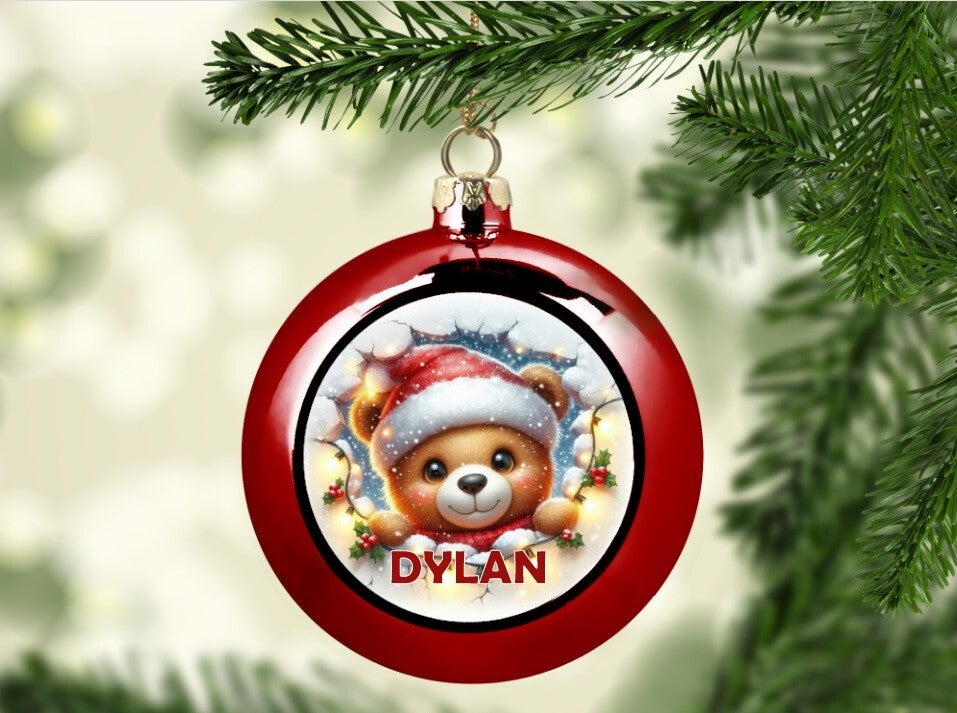 Remarque : Du fait que nos boules de Noël soient constitués d'une partie sphérique et d'une partie avec face plate (permettant de coller la plaque personnalisée), elles présentent un joint le long de son contour, où sont assemblées les 2 parties de la boule.