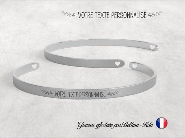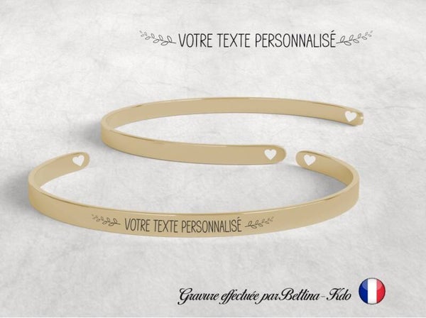 Le bracelet manchette en acier inoxydable gravé par Bettina-Kdo allie élégance et modernité. Avec son design épuré et ses gravures fines, il se distingue par sa robustesse et sa légèreté. Ce bracelet se décline en trois coloris raffinés : argenté, doré et rose gold, offrant ainsi un choix parfait pour tous les styles et occasions.
