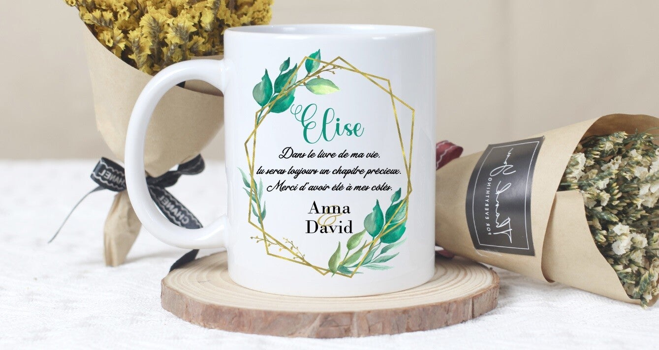 Idée cadeau pour vos témoins, optez pour le mug personnalisé.
