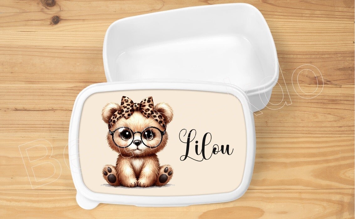 Boîte à goûter "oursonne" personnalisée, blanche