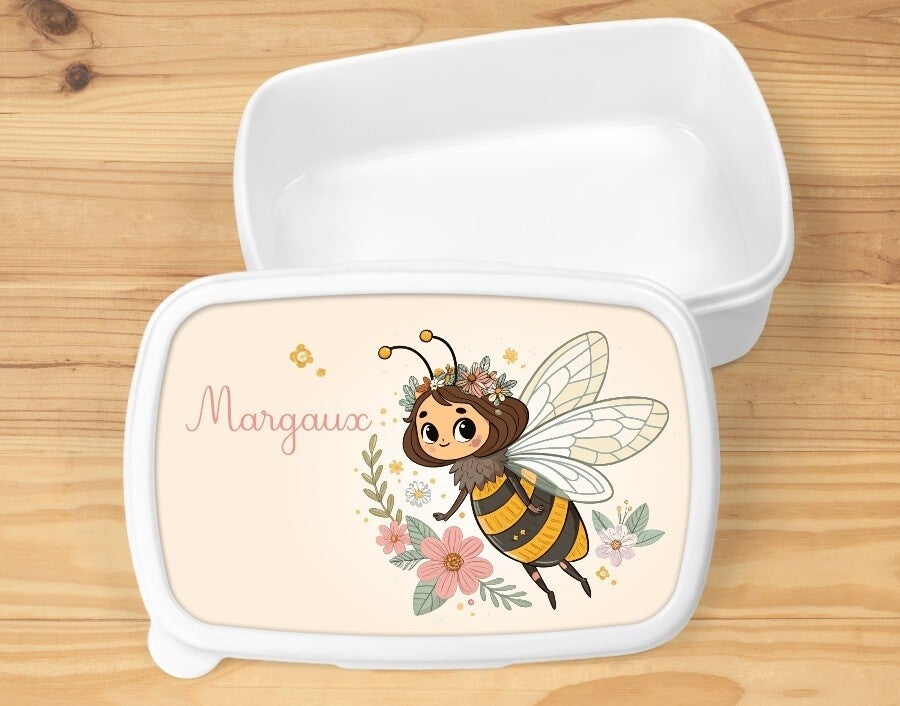 Boîte à goûter "abeille" personnalisée, blanche