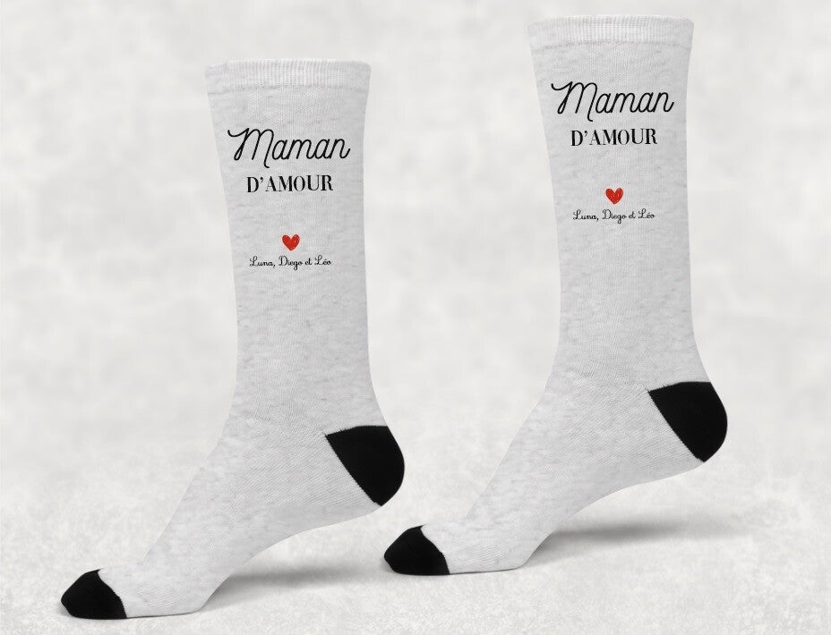 Chaussettes pailletées personnalisées femme "Maman d'amour"