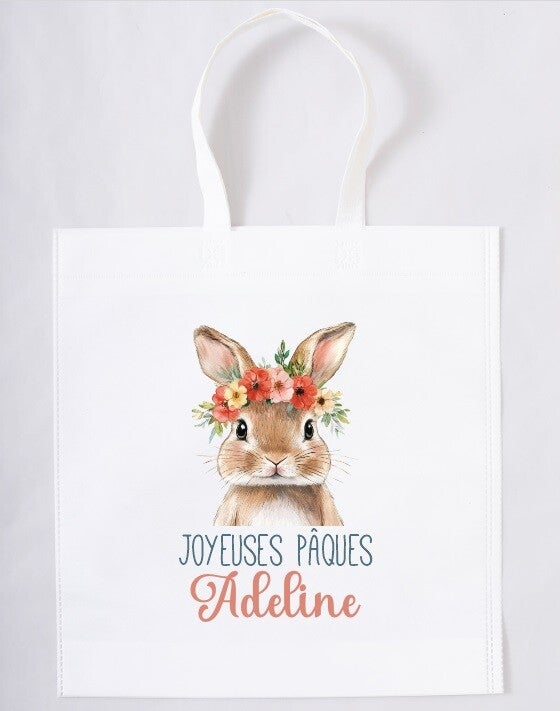 Sac shopping personnalisé, très pratique, léger et résistant, dispose de longues anses. Idéal pour la chasse aux œufs.