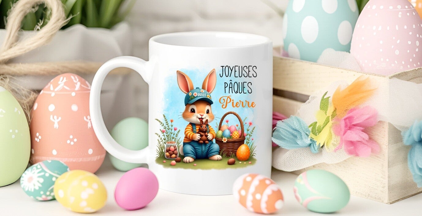 Mug personnalisé, spécial pâques "lapin" (céramique pour plastique)