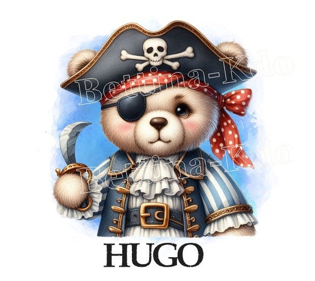 Gourde Blanche en Aluminium 600 ml avec Bouchon en Bambou "ourson pirate"