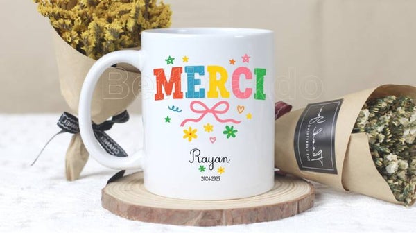 Idée cadeau pour remercier sa maîtresse, son atsem, son AESH, son orthophoniste... le mug personnalisé !