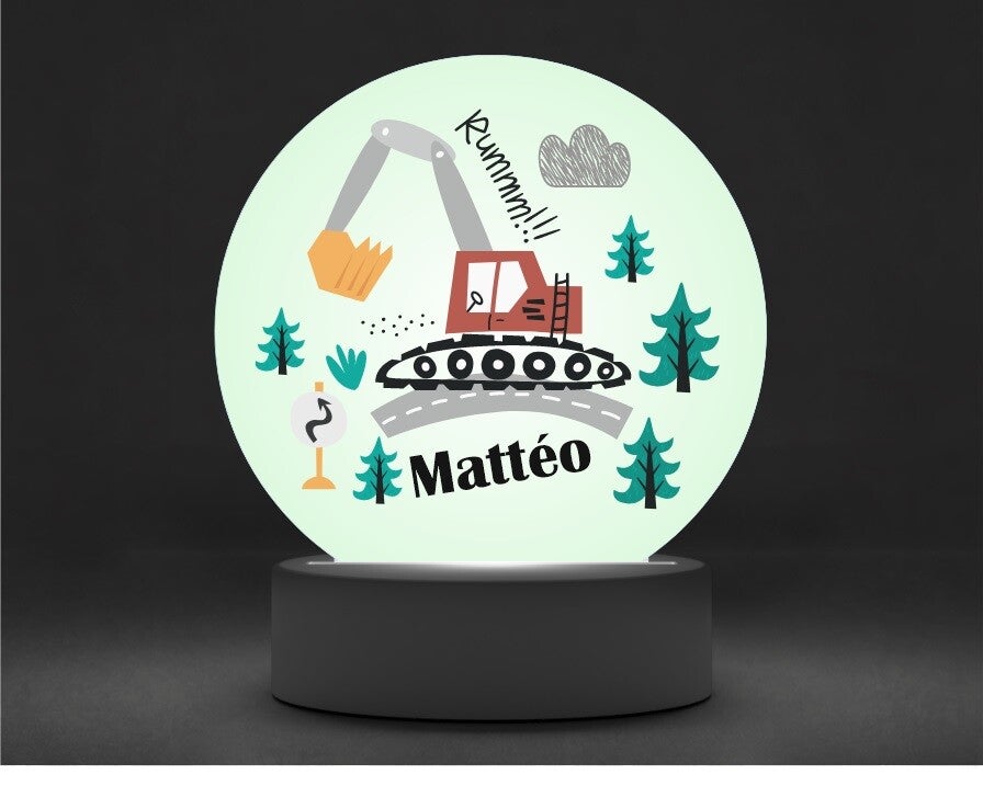 Lampe veilleuse personnalisée ENGIN DE CHANTIER (modèle au choix)