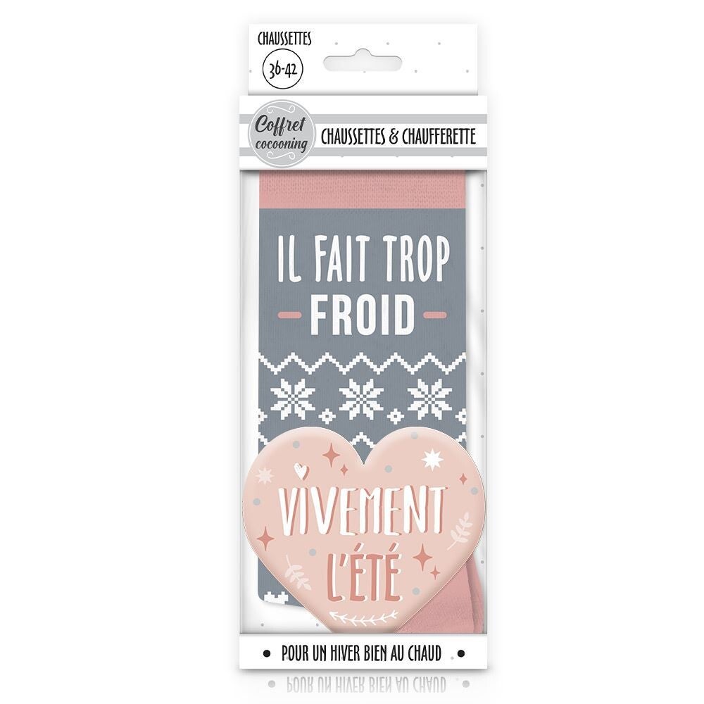 coffret cocooning femme | chaussettes et chauffe-pieds | cadeau cocooning hiver | chaussettes mignonnes femme | idée cadeau hiver | coffret hiver cozy | chaussettes motifs cœurs