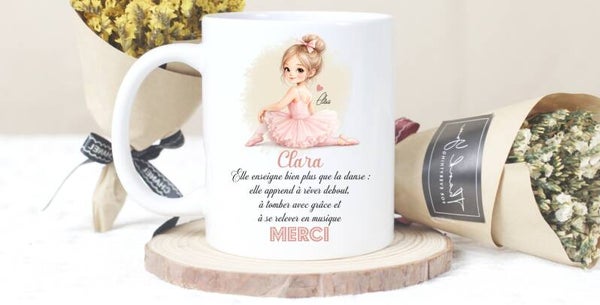 Offrez un mug personnalisé pour prof de danse et faites plaisir à une enseignante passionnée qui transmet bien plus que des chorégraphies : confiance, émotion et amour de la danse. Ce cadeau pour prof de danse est idéal pour remercier une professeure investie tout au long de l’année.
