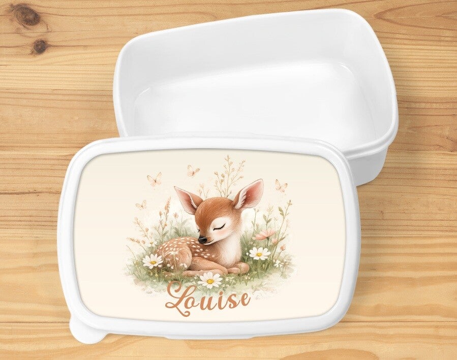 Craquez pour cette adorable boîte à goûter en plastique au motif biche, parfaite pour accompagner les repas et goûters de vos petits bouts 💕