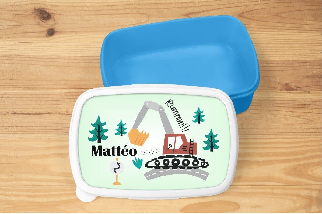 Boîte à goûter personnalisée "engin de chantier", couleur au choix