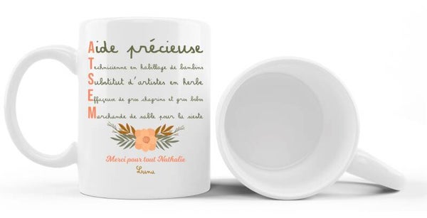 Mug pour offrir à son ATSEM pour la remercier du travail et de l'attention envers votre enfant tout au long de l'année