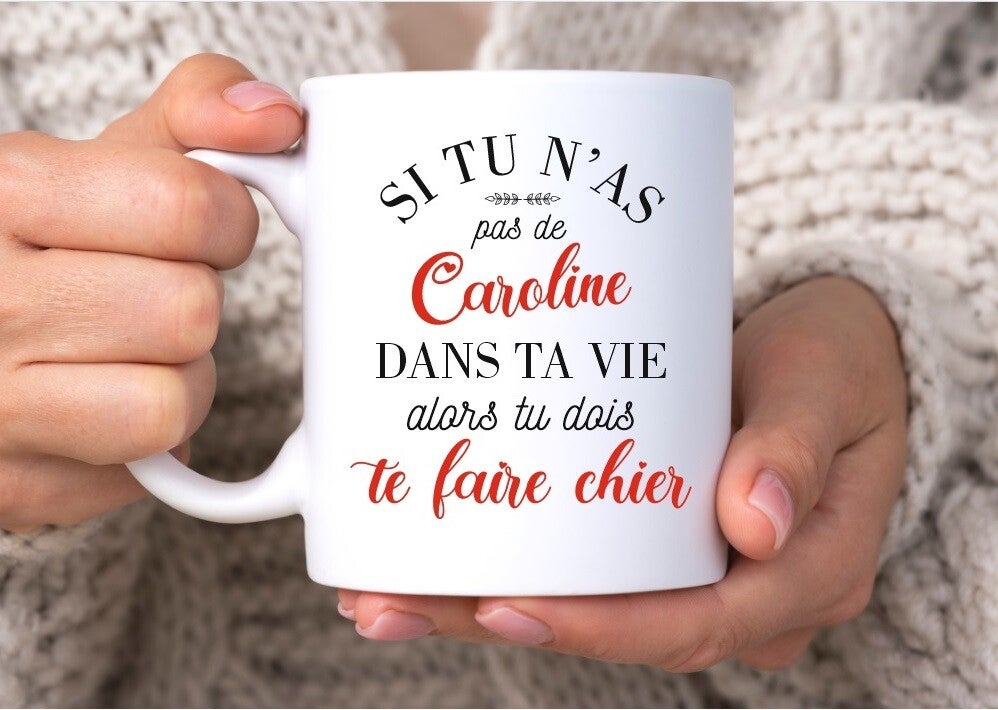 Superbe idée cadeau... à personnaliser avec le prénom de votre choix !Tasse Mug en céramique blanche avec manche rond.Hauteur : 95 mm Diamètre : 82 mm Poids : 360 gr