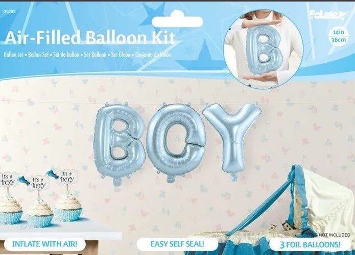 Ensemble de lettres de ballons en aluminium bleu bébé GARÇON Ce ballon en aluminium mesure 14 pouces/36 cm. L'article est fait de papier d'aluminium